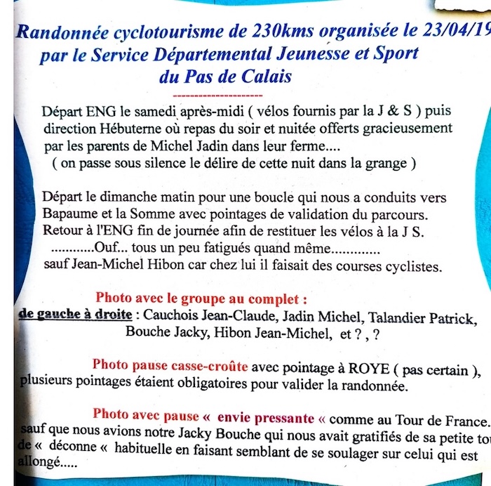 Le cursus à cette époque était un peu différent. Il avait obtenu à l’Ecole Primaire Supérieure (EPS) de Fruges son BE (Brevet Elémentaire) qui lui permettait de passer le concours d’entrée. Après 3 années de formation à l’ENG d’Arras, il avait obtenu son BS (Brevet Supérieur), puis à l’issue d’un an de stages son CAP (Certificat d’Aptitude Pédagogique). Son voyage de promo : à Marseille, m’a-t-il dit.